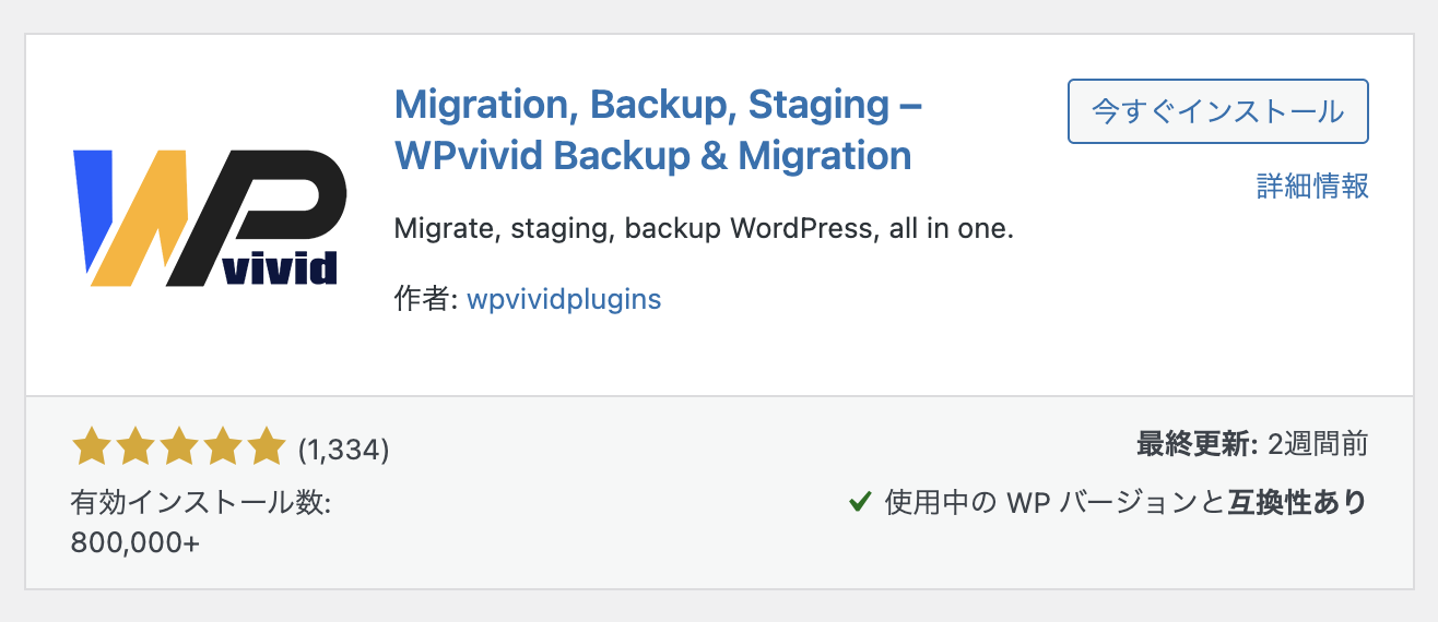 • WPvividのインストール:移行元と移行先の両方のWordPressサイトにWPvividプラグインをインストールして有効化します。プラグインページ