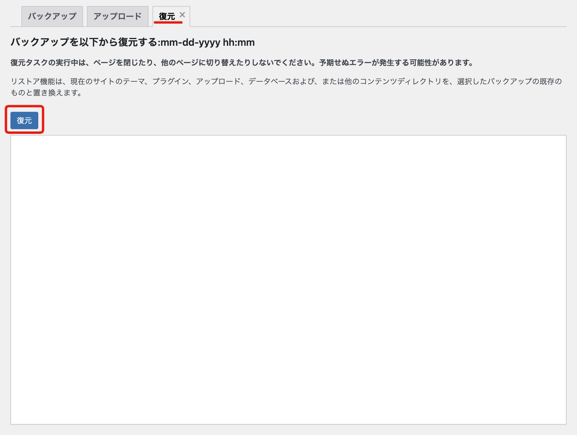 復元機能を実行:バックアップデータをインポート後、「復元」ボタンをクリックして移行プロセスを開始します。短時間でサイトが新しい環境に再現されます。